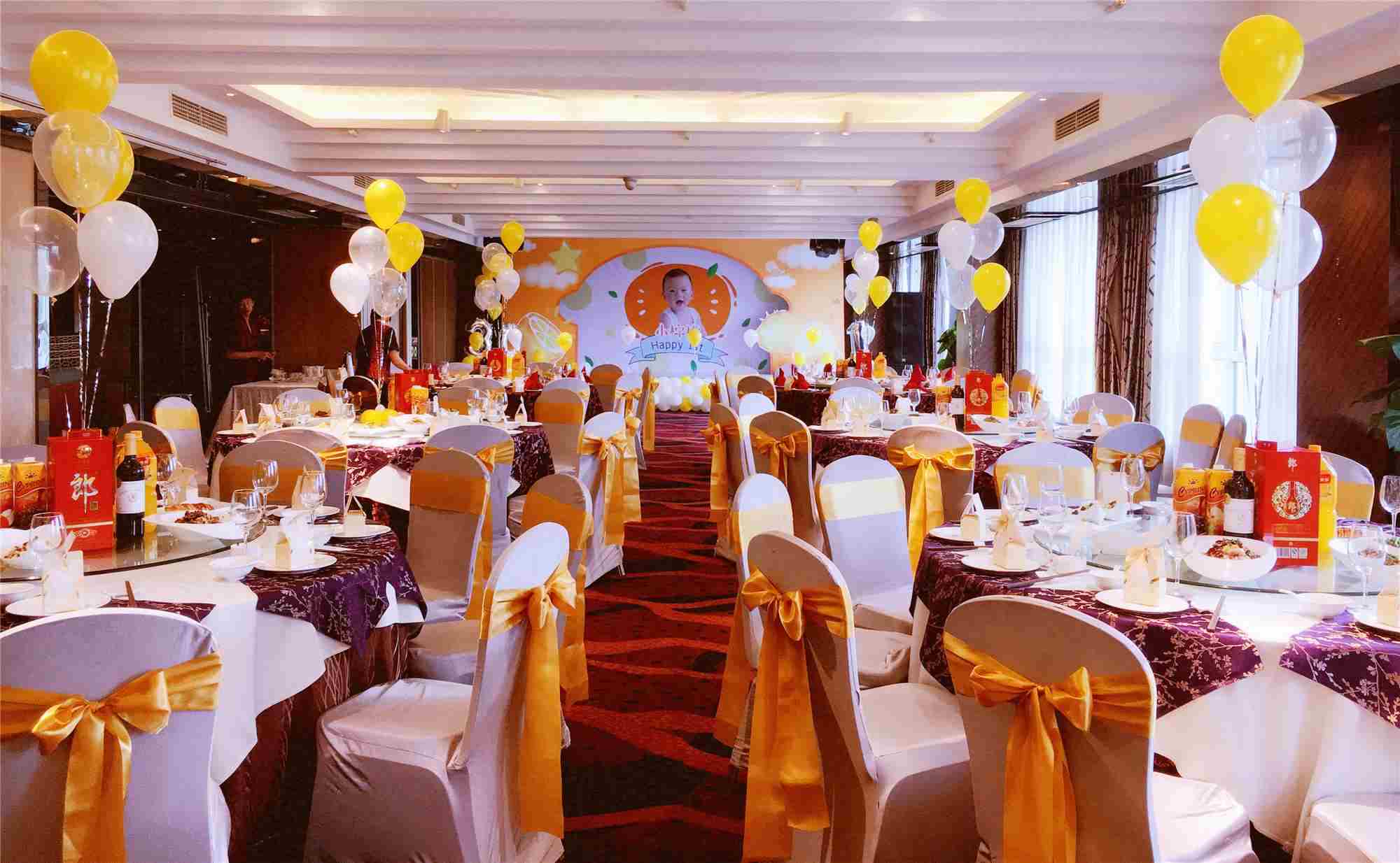 宴會廳位于酒店五樓,最大可容納40桌,最優(yōu)桌數(shù)為30桌,宴會廳呈長方形,全廳無柱,配備了水晶點(diǎn)燈,舞臺,LED等設(shè)備設(shè)施,起訂餐標(biāo)1199元/桌。